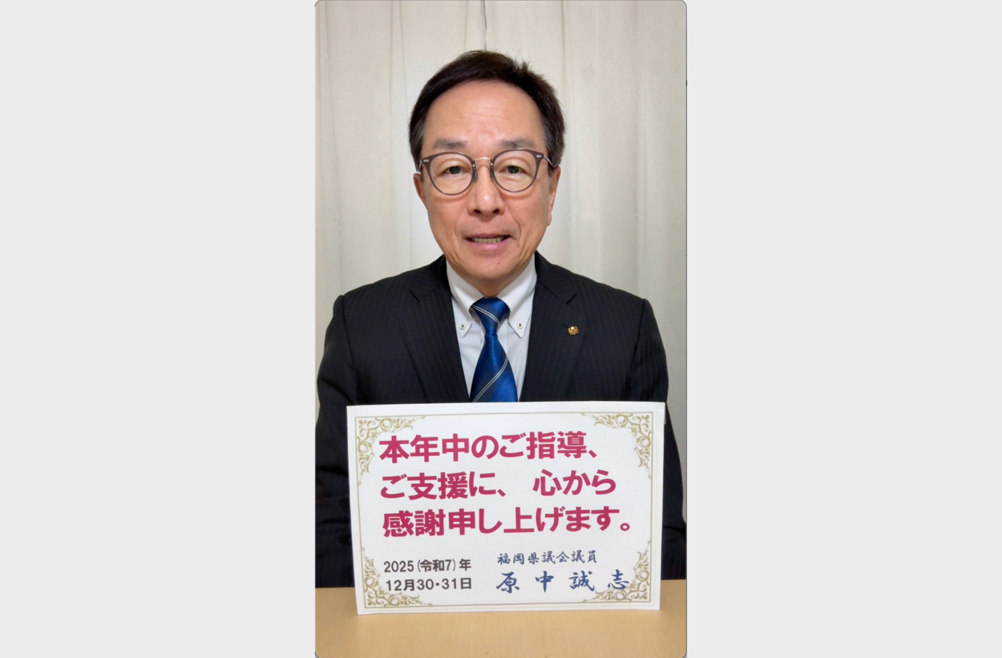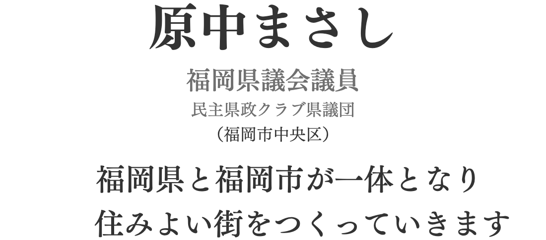 更新情報 2026年1月1日 「2026年 新年動画挨拶」を掲載しました 2025年12月30日 「2025年最後の動画報告」を掲載しました 2025年8月6日 「動画メッセージ 2025年8月6日」を掲載しました 2025年7月18日 6月県議会「予算特別委員会」県警察 質疑応答を掲載しました お問い合わせ INDEX 原中の政策 県議会質問 動画メッセージ ブログ原中 この一年間の県議会報告 県議会録画中継 視察報告 活動ニュース 原中的中央区の歩き方 政務活動費 県政事務所・連絡先 プロフィール 志と挑戦 私も応援します リンク コロナ感染症 各種給付金、協力金、支援金等 県議会の傍聴に来てください スマート献金 Push! 原中まさし 2023 原中まさし CM 2024 県政事務所・連絡先 〒810-0031福岡市中央区谷2丁目1-25 アーバン山の上106号TEL : 092(406)9390 FAX : 092(406)9391Email : info@haranaka.jp
