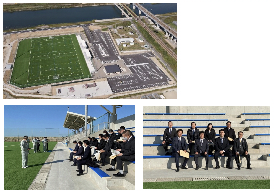 今回視察した「フィットネス・エリア」は、全面人工芝の本格的な球技場があり、サッカーやラグビー、フットサルに利用でます。ナイター設備も完備しています。また、県内最大級のスケートボード場もあり、子供から大人まで楽しめるエリアです。