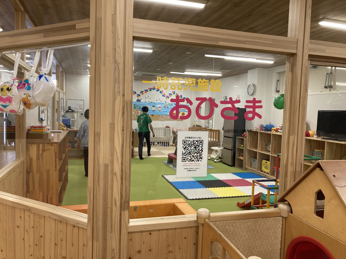 『ここっちゃ』とは、「地域子育て支援センター」や一時託児施設、飲食・物販テナントが入った複合施設で、直方市が設置しています。