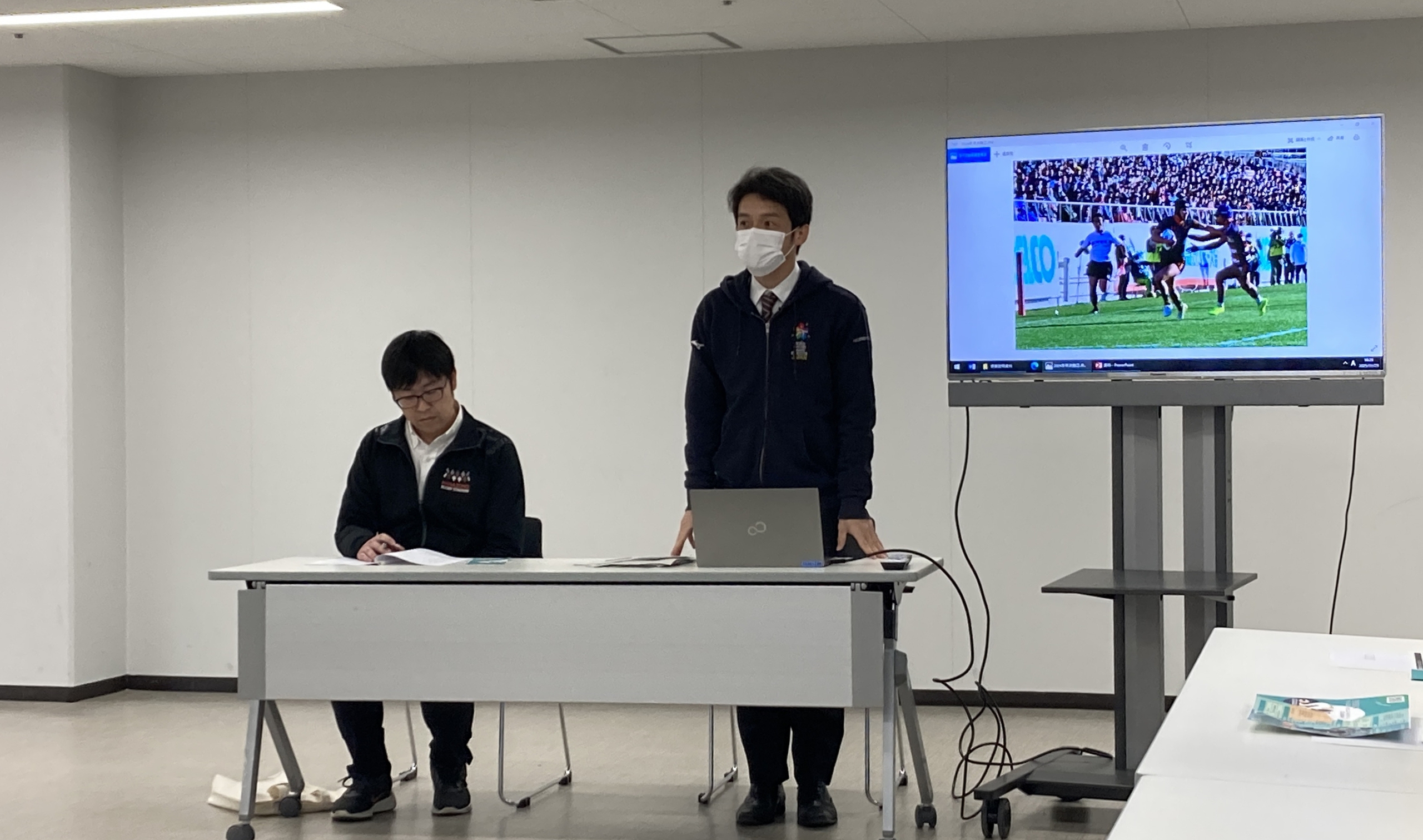 今回の「東大阪市立ウィルテェアスポーツコート」視察では、隣接する「HANAZONO RUGBY STADIUM」も併せて視察しました。