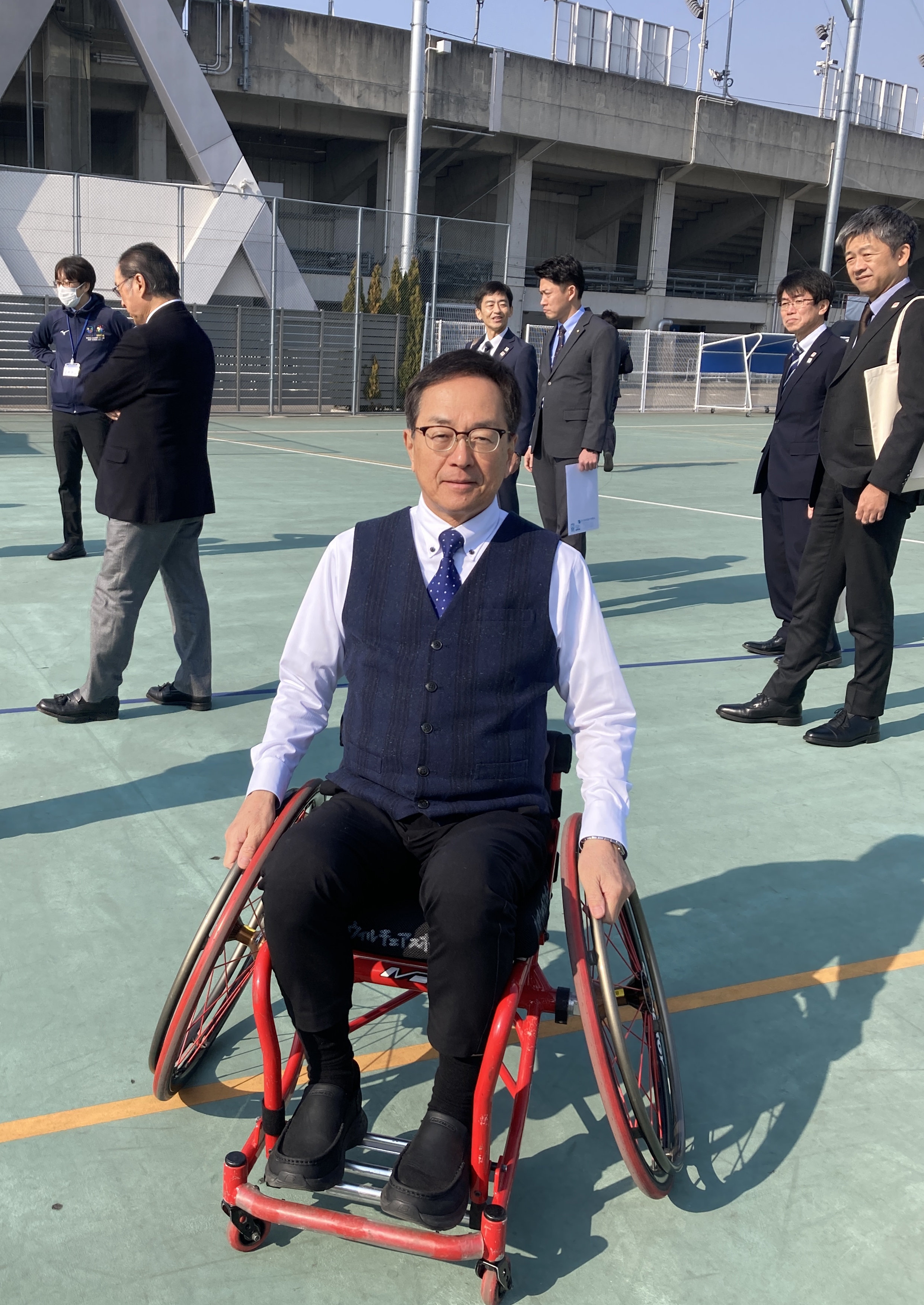 - 視察2日目、最初の視察先は東大阪市「東大阪市 立ウィルテェアスポーツコート」でした。